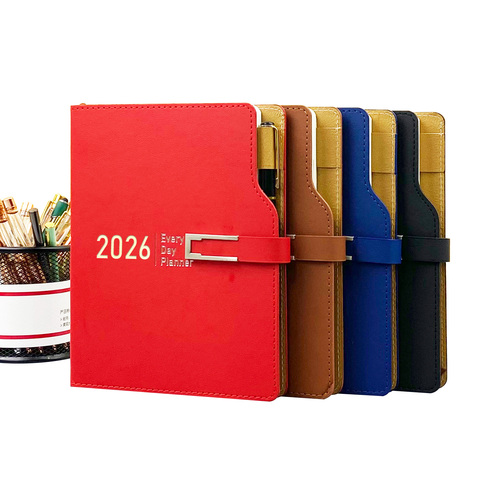 2026 2027 logotipo personalizado impresión Pu cubierta de cuero A5 diario español agendas cuaderno con portalápices