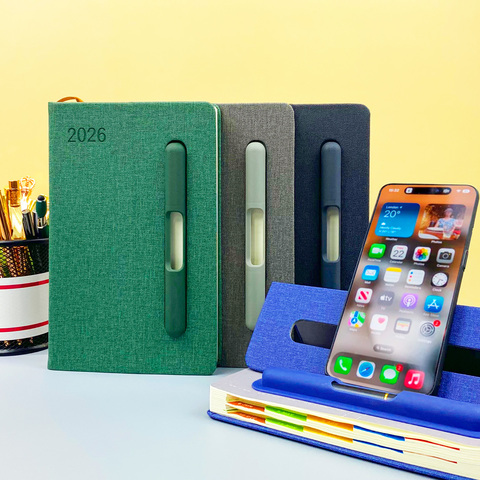 2026 2027 Logotipo personalizado Impressão Pu Capa De Couro A5 Diário Espanhol Agendas Diário Notebook Com Pen Holder